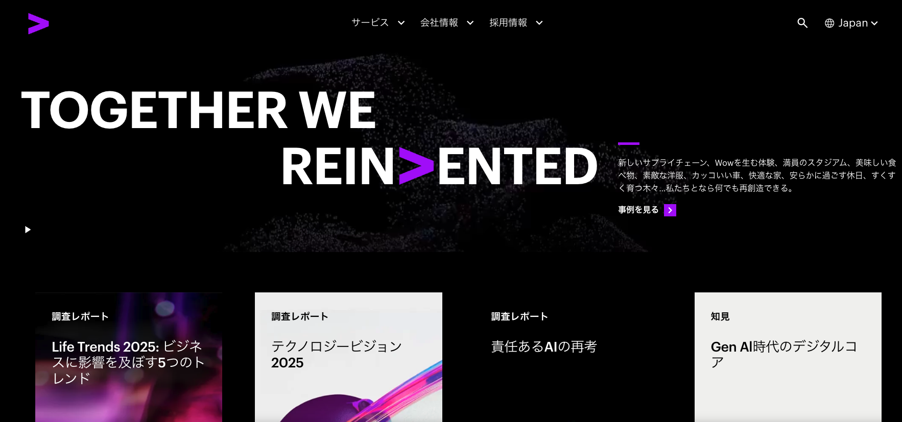 アクセンチュア株式会社は、世界的なプロフェッショナルサービス企業として、戦略立案からテクノロジー実装まで幅広いサービスを提供しています。ERPコンサルティングにおいては、SAP、Oracle、Microsoft Dynamicsなど主要ERPシステムの導入・最適化に強みを持ち、業界特化型のソリューションと豊富な実績で知られています。デジタルトランスフォーメーションを促進するERPクラウド移行支援やAI/IoT連携など最新技術の活用にも定評があり、グローバル対応力と日本市場への深い理解を兼ね備えた企業です。
